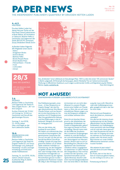 1. Mai 201811. Dezember 2023 Paper News #10 The independent Publisher’s Quarterly by DRUCKEN HEFTEN LADEN https://paper-news-blog.tumblr.com/