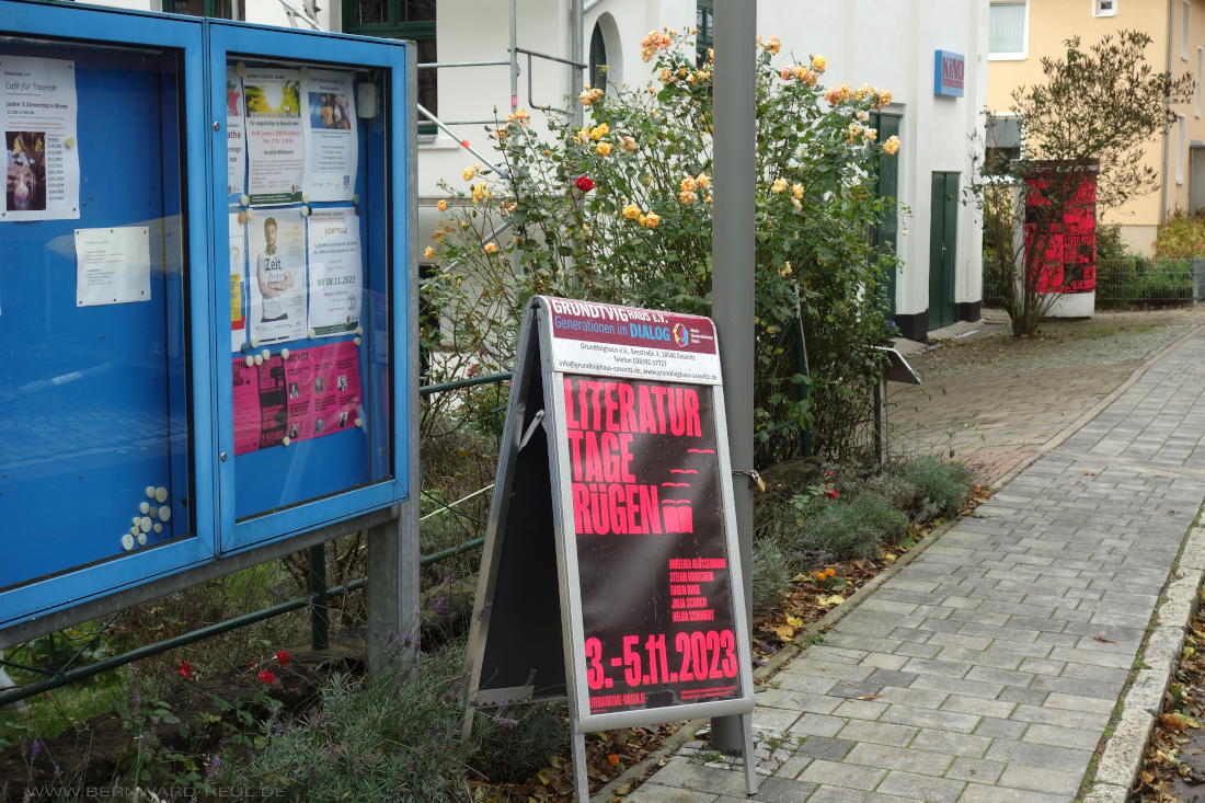 5. November 202310. November 2023 Literaturtage Rügen 3/3 Vor dem Grundtvighaus Sassnitz Vor dem Alten Kühlhaus am Stadthafen Sassnitz Im Alten Kühlhaus Lesung: Stefan Kruecken liest aus „Das muss das Boot abkönnen” Mitglieder der Schreibwerkstatt über Krise und Krisenbewältigung Ausklang