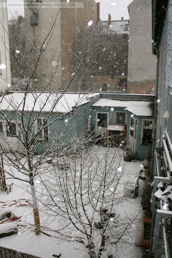 Schnee fällt in den Hof